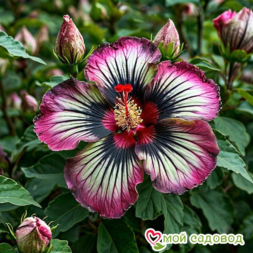 Добро пожаловать в интернет-магазин “Мой Садовод”! Мы с восторгом представляем вам утонченный и изысканный сорт гибискуса — “Амбер Лайт” (Amber Light). Этот гибискус словно излучает теплый янтарный свет, сочетая в себе нежность белых лепестков, трогательную розовую сердцевину и графичное черное кружево прожилок. Он станет настоящим украшением вашего сада, привнося в него атмосферу элегантности и загадочности. «Мой Садовод» — ваш верный проводник в мир красоты и гармонии, предлагающий только лучшие саженцы, способные превратить ваш сад в оазис неповторимого очарования!