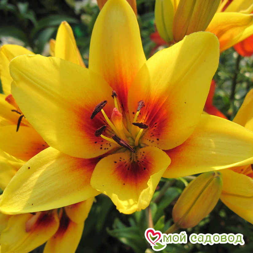 Читать далееОригинальная лилия с ее необычной окраской станет предметом восхищения гостей и соседей. Цветет этот сорт в середине июля. На стебле образуется до 7 цветков направленных вверх. Лепестки среднего размера, желтые, с красно-коричневым основанием и пыльниками, не отгибаются. Очаровательная лилия необычайно хороша в срезке. Высаживать Grand Cru (Гранд Крю) на клумбе лучше среди многолетников с желтыми или синими цветками.